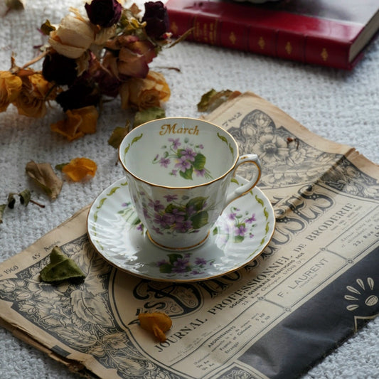 Tasse "Marcy" du mois de Mars en porcelaine anglaise fleurie Duchess