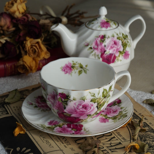Case n°12 | Tasse fleurie en porcelaine anglaise Duchess & théière jaune en céramique Greengate 1L