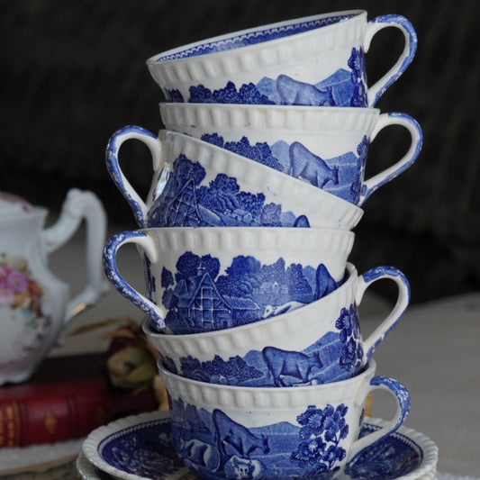 Tasses "Beth" en céramique anglaise aux motifs bleutés English Scenic Adams England (lot de 2 ou de 6)