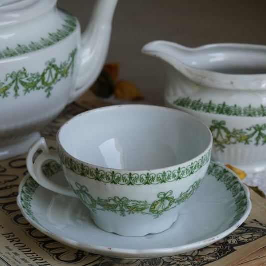 Service à thé "Armand" en porcelaine motif guirlande vert et or fin du 19ème siècle