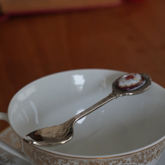 Cuillère à thé "Jane" en métal avec son médaillon en porcelaine fleuri Royal Albert