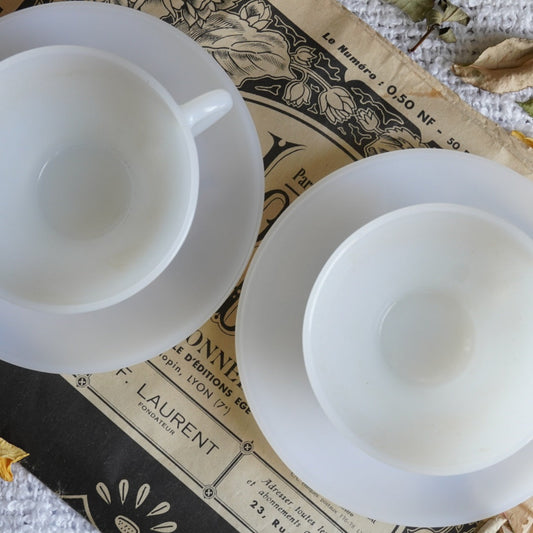 Tête-à-tête de tasses "Iphigéni" en verre opalin blanc Arcopal fabrication française
