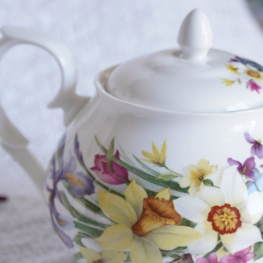 Théière "Avery" en porcelaine anglaise Roy Kirkham modèle "Redouté Roses"