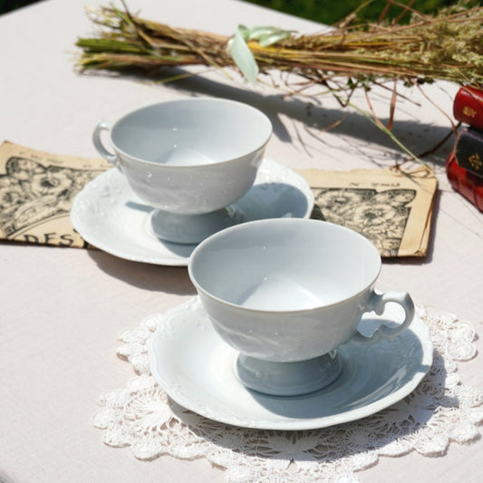 Tête à tête "Léa" de tasses à thé en porcelaine avec de subtils reliefs