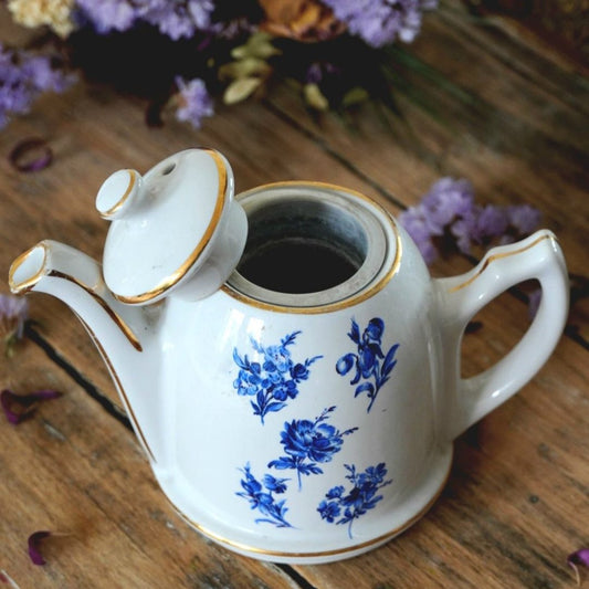 Théière "Blue" en porcelaine véritable et son filtre inox