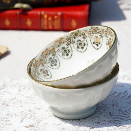 Tête à tête "Ignace" de petits bols en porcelaine de Limoges dorés