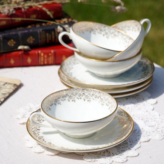 Tasses à thé "Cléophée" en porcelaine de Limoges dorées maison Chastagner (lot de 4)