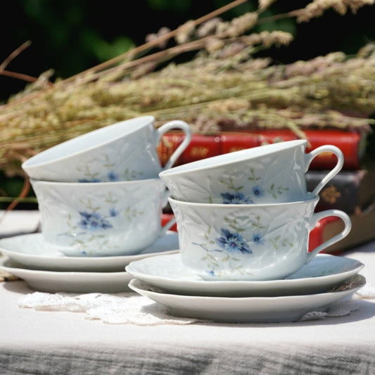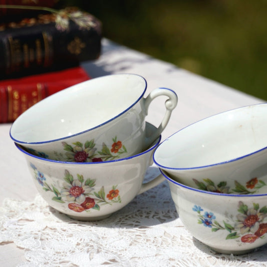 Tasses "Ebertine" en porcelaine ancienne et fleuries (lot de 4)