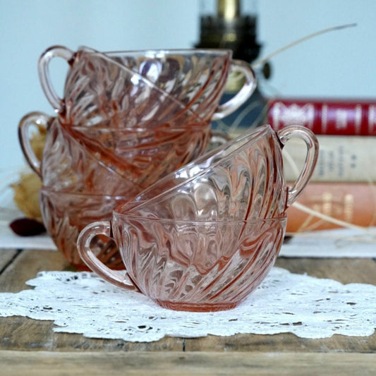 Tasses "Rosalie" arcoroc en verre rose torsadé (lot de 7)