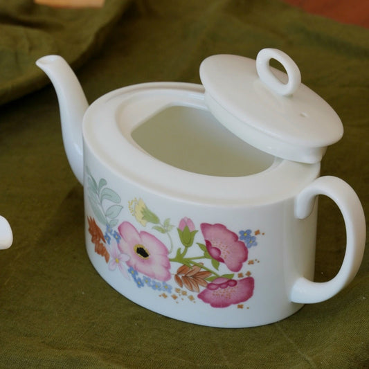 Théière "Sally" et son pot à lait fleuries en porcelaine anglaise Wedgwood modèle Meadow Sweet
