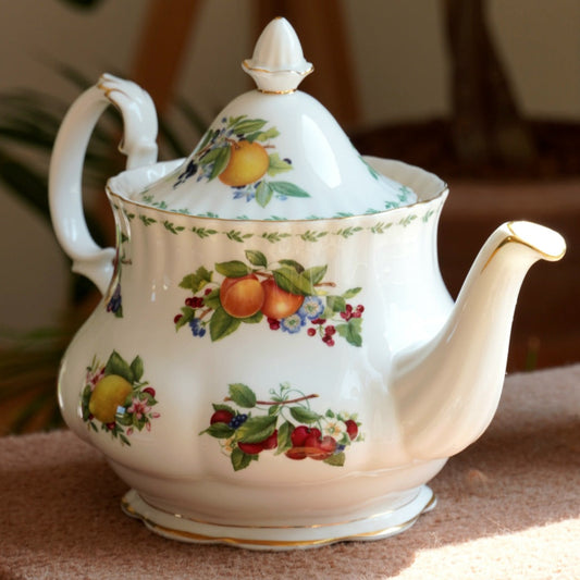 Théière "Fruits" en porcelaine anglaise Royal Albert modèle "Covent Garden"