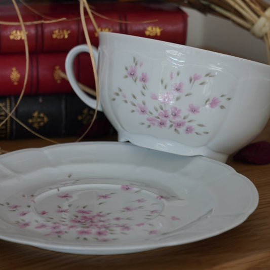 Grande tasse "Berthe" en porcelaine allemande bavaria fleurie