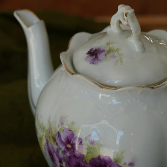 Théière "Floralie" en porcelaine aux fleurs violettes et dorée