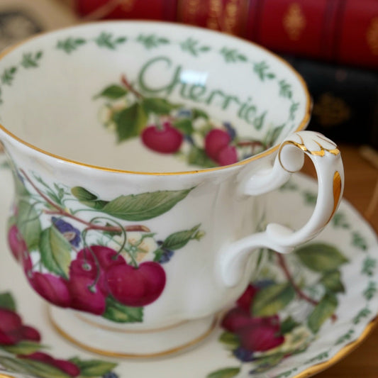 Tasse "Cerises" en porcelaine anglaise Royal Albert modèle "Covent Garden"