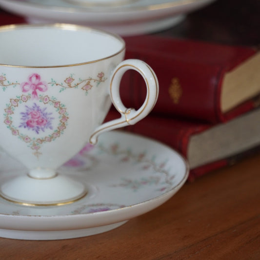 Petite tasse "Clairice" sur pied en porcelaine fine aux délicats motifs rosés