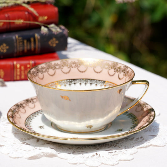 Grande tasse "Juliette" en porcelaine de Limoges rosée et dorée