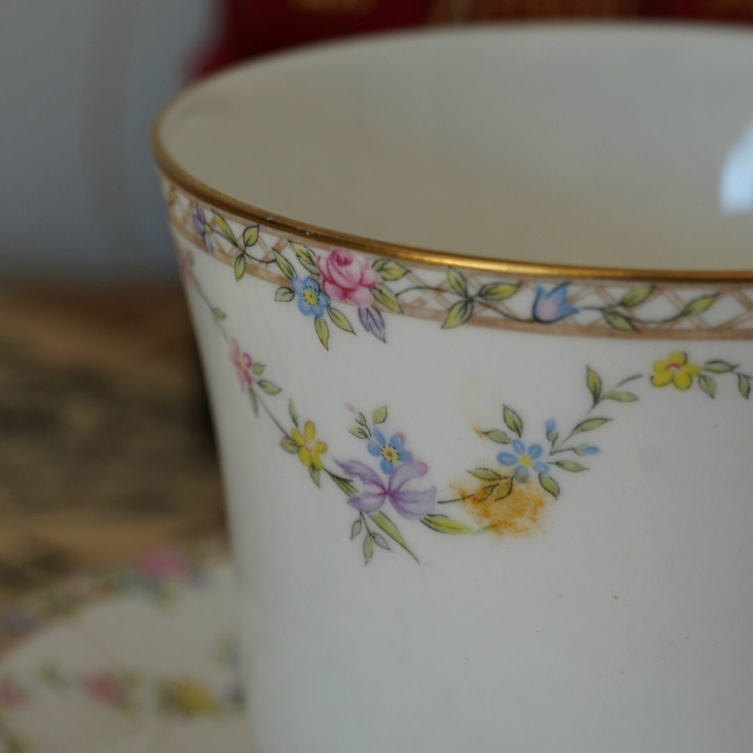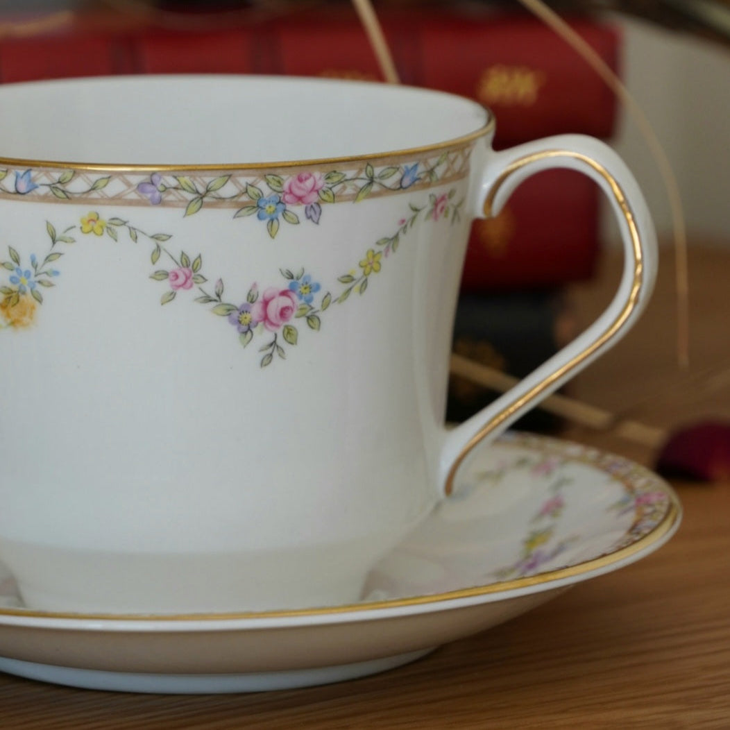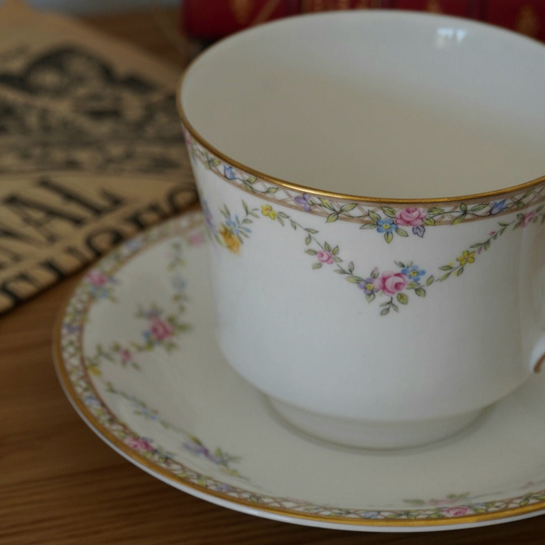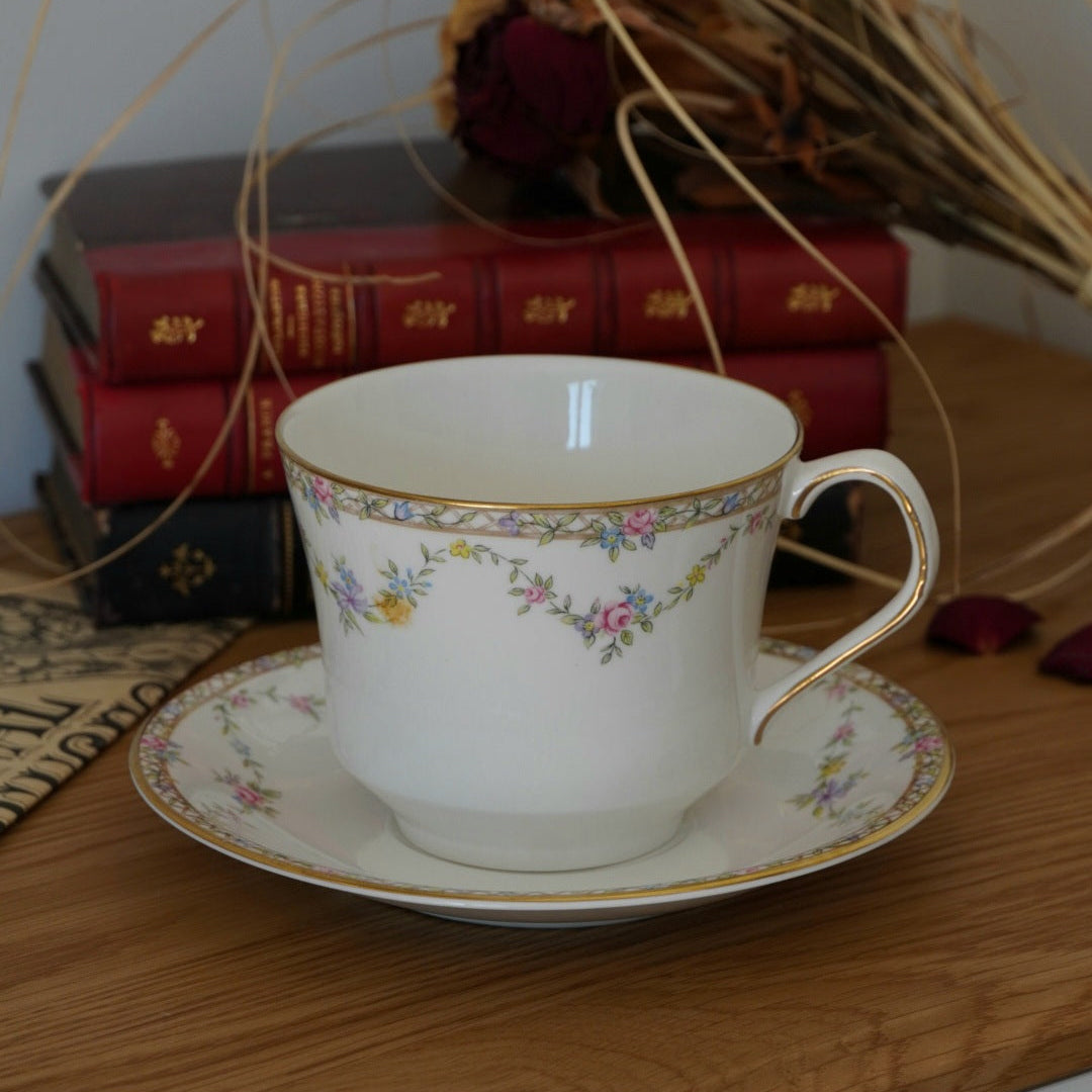 Offrez à vos moments de thé ou de café une parenthèse de raffinement avec cette grande tasse en porcelaine fine anglaise signée Elizabethan, modèle "Garland Rose".