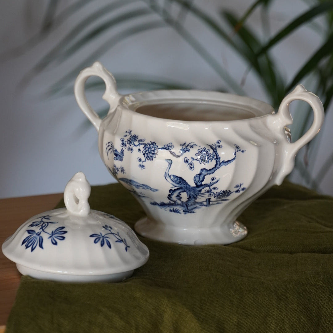 Pièce de charme, il complète parfaitement un service de table Exotic Birds ou peut être présenté seul comme objet décoratif, apportant une touche vintage et lumineuse à une table ou à une vitrine.